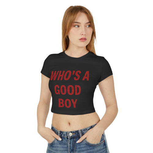 "Who's a Good Boy" Women's Baby Tee — Cropped Graphic Tee